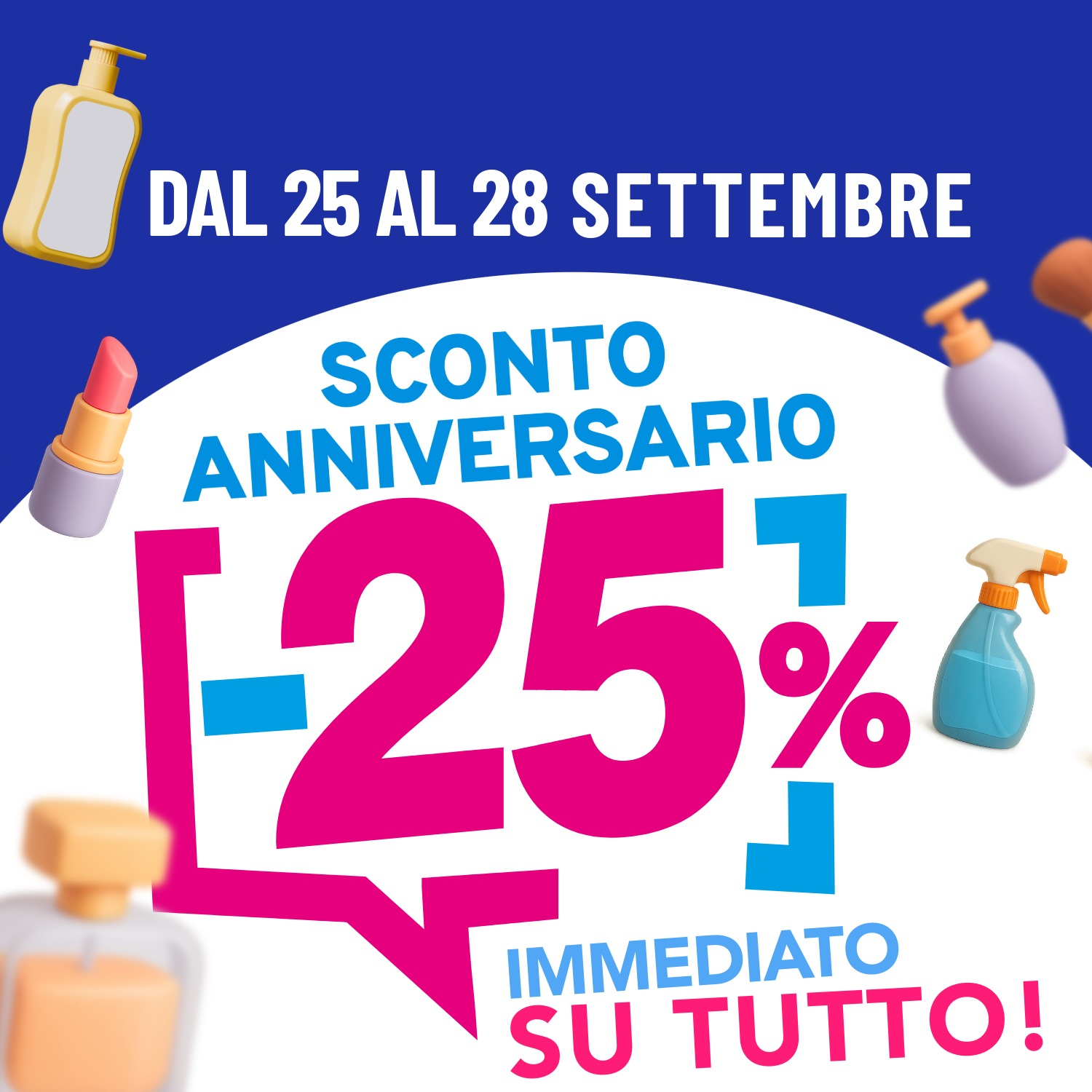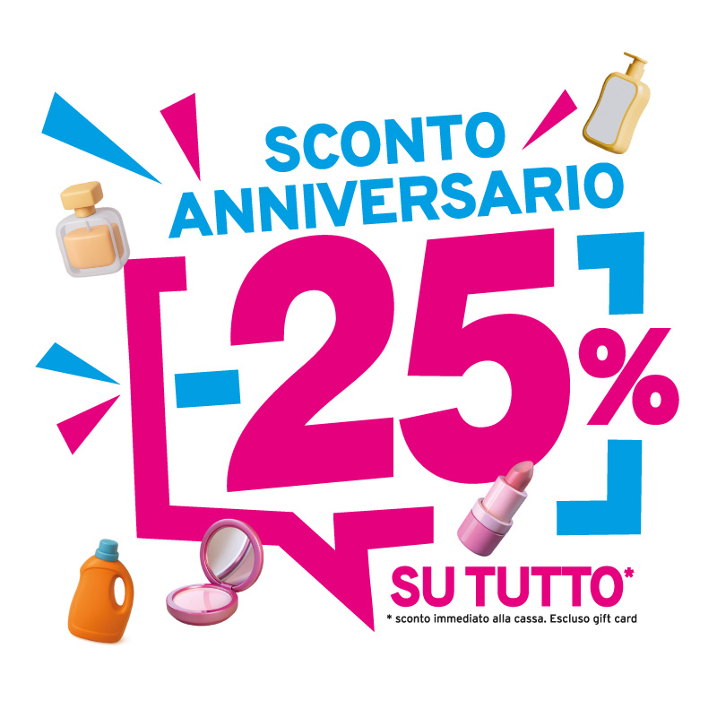 Dal 25 al 28 settembre ti aspetta uno sconto speciale del 25% su tutti i prodotti* in occasione del nostro anniversario. 🛍️✨